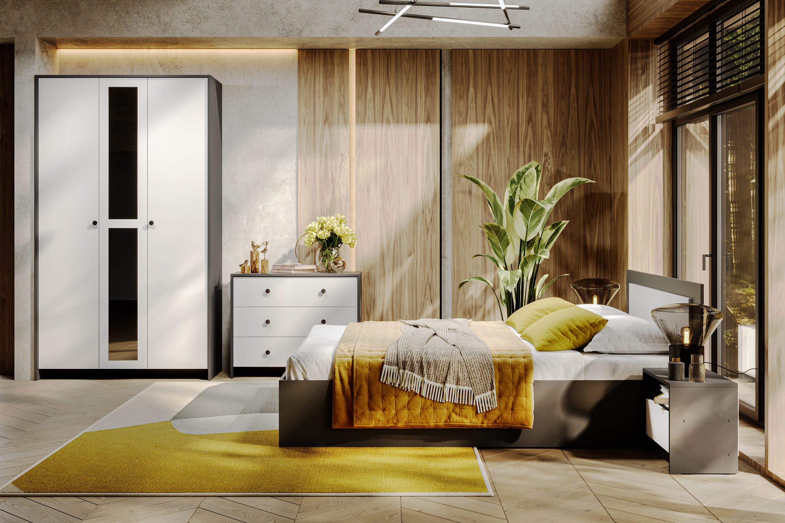Dolce furniture is available in a variety of color combinations, including Basalt + Rustic Oak and Rustic Oak + Persian Pearl, offering flexibility for different interior styles. Each piece is designed with clean lines and modern proportions, making it suitable for both contemporary and classic spaces. The collection includes living room and bedroom sets, each crafted to blend aesthetics with functionality.