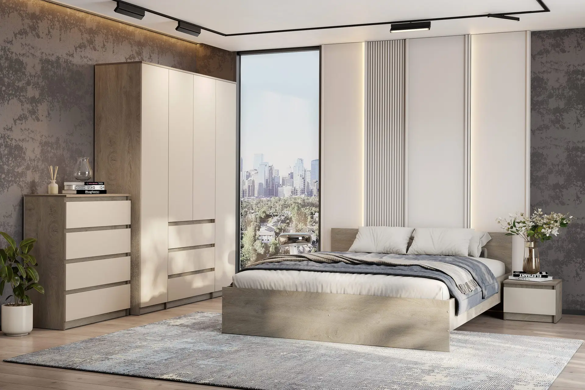Made of high-density chipboard, the furniture guarantees resilience to scratches and mechanical damage. Ergonomic construction ensures long-lasting comfort and reliability, while timeless design keeps the bedroom stylish for years.
