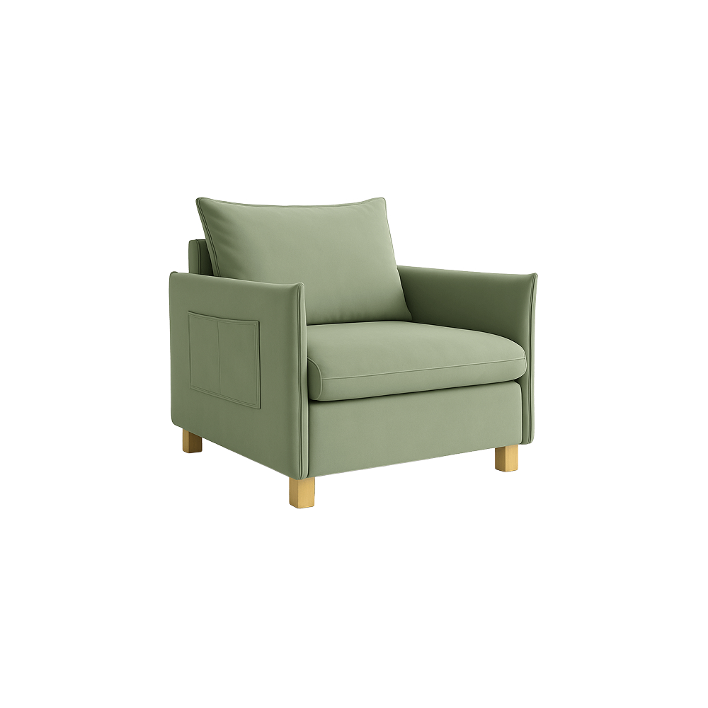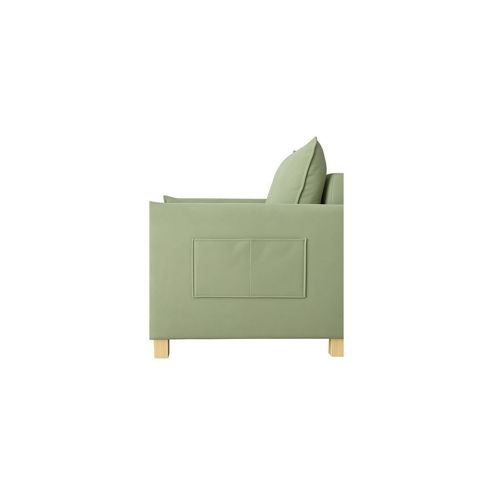 roll-out sleeping place, zig-zag springs in the seat, upholstered soft back cushions, support natural beech