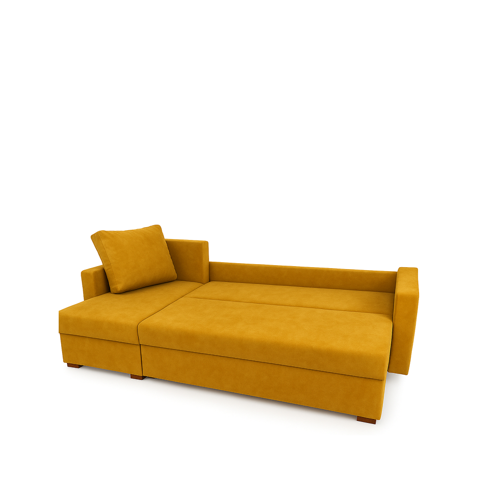 universal design (right / left), roll-out sleeping place, zigzag springs in the seat, large storage box, plastic support